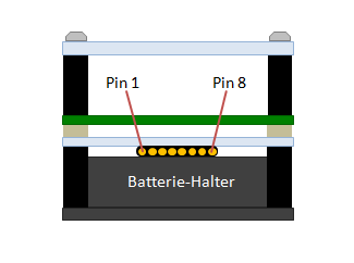 Für den Anschluss von Sensoren habe ich 3,3 Volt, Masse und fünf freie GPIO-Pins mit einer 8-poligen Buchsenleiste verdrahtet. Die Belegung ist wie folgt: