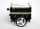 - Mit dem Pololu DRV8835 Dual Motor Driver Kit for Raspberry Pi B+ steht ein Modul (einschließlich Software) zur Verfügung, das direkt auf den GPIO-Konnektor des Raspberry Pi aufgesteckt werden kann und die H-Brücken-Steuerung für die Motoren anschlussfertig implementiert.