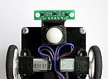 - Wenn der mittlere Sensor ein Hindernis erkennt (in etwa 10 cm Entfernung voraus), wird der Roboter eine Linkskurve ausführen und sich in der Regel dem Hindernis dabei mit der rechten Flanke weiter nähern.